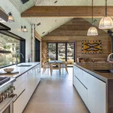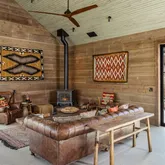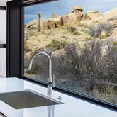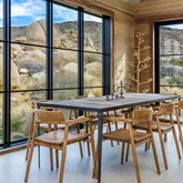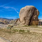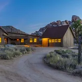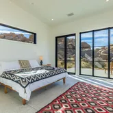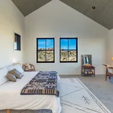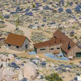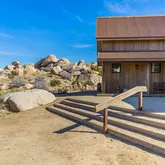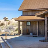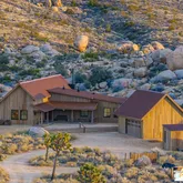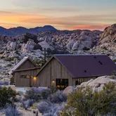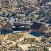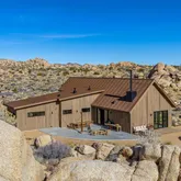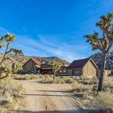 Blending into the boulders, this custom off-grid home is nothing short of rustic paradise on 10 acres. Newly constructed with utmost sensitivity for land and views, it borders the preserved Sand to Snow National Monument in coveted Pipes Canyon and rewards from every stunning angle. Restrained minimal architecture and honest craftsmanship show reverence for a timeless region the Serrano people called "Rocky Place." Through the wood gates, past the undisturbed Joshua Trees, the welcoming sight of...Blending into the boulders, this custom off-grid home is nothing short of rustic paradise on 10 acres. Newly constructed with utmost sensitivity for land and views, it borders the preserved Sand to Snow National Monument in coveted Pipes Canyon and rewards from every stunning angle. Restrained minimal architecture and honest craftsmanship show reverence for a timeless region the Serrano people called "Rocky Place." Through the wood gates, past the undisturbed Joshua Trees, the welcoming sight of a hand-stained cedar exterior and steep rooflines covered in Corten steel conjure late 1800s homesteads of the mining town of Bodie. Airy interiors reflect the rugged-chic spirit of Sundance Lodge, revealing authentic details from salvaged beams to cedar-plank walls. Through steel-framed windows, sunrises and sunsets paint the sky. Evenings beckon with a book by the wood stove. Open dining adjoins top-of-the-line kitchen with prep pantry, Italian cabinetry and wood-look leathered Quartzite island. Dual ensuite bedroom suites open to private patios and a 2-car garage with HVAC is flex space for a studio or home gym. Rest in the deep shade of the porch or hike and bike into pristine terrain piled with high nature's displays. Bird and animal life share these classic western landscapes in a peace-laden pocket where a global arts scene soaks up the sacred energy. New private solar, septic and high-volume well serve this independent property in a perfect balance of land-honoring and luxury.