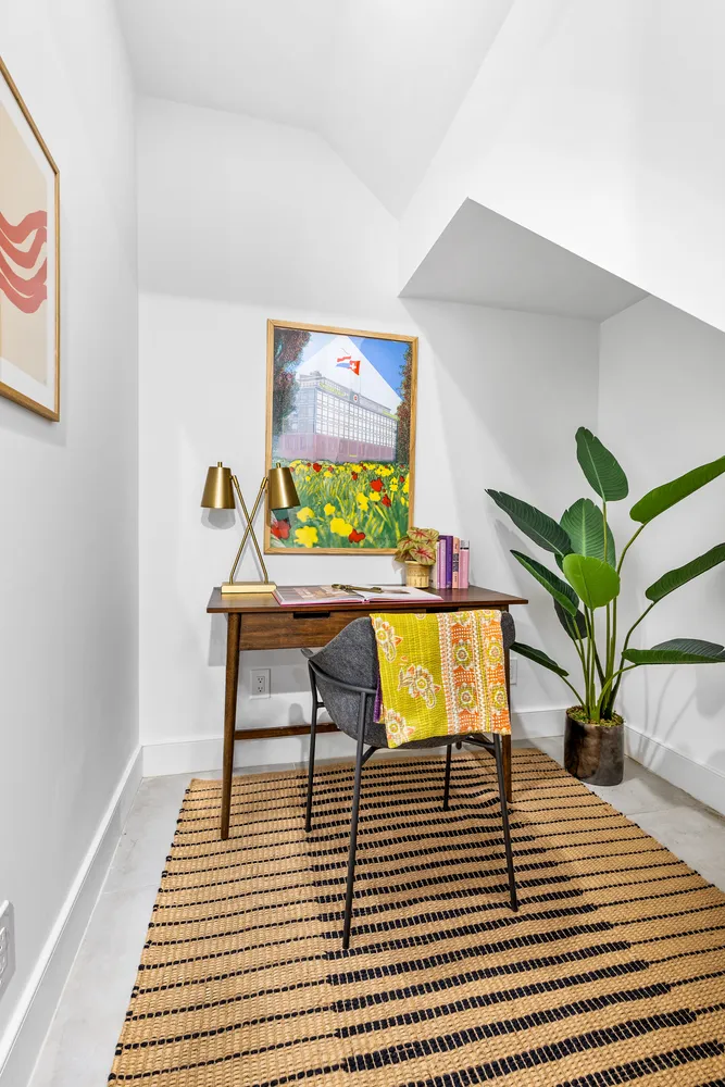 The lower level of the duplex has a renovated 1/2 bath, tons of storage space, and a massive recreation room that can easily be used as a bedroom. The large walk-in closet under the staircase could easily be used as an office space. This level also has an in-unit vented washer/dryer and access to the private garden.