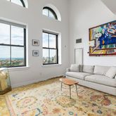 At nearly 1400 square feet, 19J features big closets and big room dimensions. The king size master suite, loaded with...No Fee! Available November 1. The quintessential wow factor greets you as you enter this two-bedroom, two-bath condo with a bonus room for use as a home office, nursery or third bedroom. Sun drenched by 18-foot ceilings and arched windows in the living room, 19J is a one of a kind apartment at One Hanson Place, the one of a kind, iconic former Williamsburgh Savings Bank Clocktower.