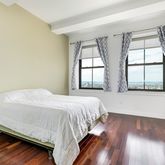 At nearly 1400 square feet, 19J features big closets and big room dimensions. The king size master suite, loaded with closet space, spans the full length of the apartment. Its en suite custom bath includes inlaid marble flooring, dual sink vanity, shower stall and soaking tub. Past an enormous, open living and dining area is a second bedroom, second full bath and a bonus room for use as an office, yoga room, nursery or spare bedroom. Custom kitchen with lava stone counters, breakfast bar, Viking appliances, and pantry. In-unit washer/dryer included.