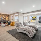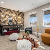 The walk-out basement is an entertainer’s dream, featuring a large theater room, a reclaimed wood accent wall, a wet bar, and ample space for gatherings. Two additional bedrooms and bathrooms make hosting guests effortless.
