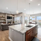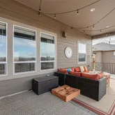 The heart of the home is the chef’s kitchen, designed to impress with its oversized island, ample cabinetry, walk-in pantry, and premium stainless-steel appliances. Seamlessly connected to the dining area, it opens onto a sprawling deck—perfect for al fresco dining or simply taking in the spectacular Colorado sunsets.
