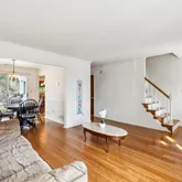 that extend through most of the main level. The inviting living room flows seamlessly into the