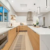 - Kitchen: 220 Volt Outlet, Cooktop - Gas, Countertop - Quartz, Microwave, Oven - Built-In, Oven Range - Built-In, Skylight