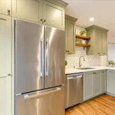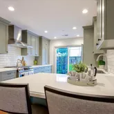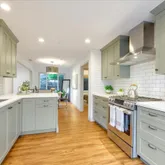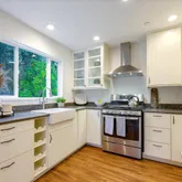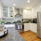 - Kitchen: Countertop - Quartz, Dishwasher, Exhaust Fan, Hood Over Range, Oven Range - Gas, Refrigerator