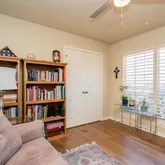 - INTERIOR: Ceiling Fan, Security System, Skylight(s), Smoke Alarm, Plantation Shutters