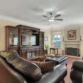 Back on the market at no fault of the seller! If you are looking for space then this well thought out home is for you. With a bedroom and full bath downstairs as well as a sitting room/flex room/office (you decide), there is seriously space for everyone! As you enter, you will love the detail of the trim work downstairs from coffered ceilings to wainscotting to the window casings, these extra features are truly a work of art. Get cozy by the vent-less gas fireplace with it's gorgeous mantle. Entertaining...Back on the market at no fault of the seller! If you are looking for space then this well thought out home is for you. With a bedroom and full bath downstairs as well as a sitting room/flex room/office (you decide), there is seriously space for everyone! As you enter, you will love the detail of the trim work downstairs from coffered ceilings to wainscotting to the window casings, these extra features are truly a work of art. Get cozy by the vent-less gas fireplace with it's gorgeous mantle. Entertaining won't be a problem with your open kitchen and oversized breakfast area. Upstairs you will find 3 additional bedrooms as well as the Impressive Master Suite which features his and her walk in closets, a large sitting area, an oversized double vanity, a garden tub, and a separate shower. Out door entertainment is fun and easy with your expansive backyard, covered patio, and no neighbors behind you. This community has 3 ponds all stocked with fish as well as amenities.