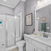 - Interior Features: Bookcases, Ceiling Fan(s), Double Vanity, Eat-in Kitchen, Entrance Foyer, Granite Counters, High Ceilings, High Speed Internet, Pantry, Master Downstairs, Storage, Walk-In Closet(s), Walk-In Shower, Water Closet