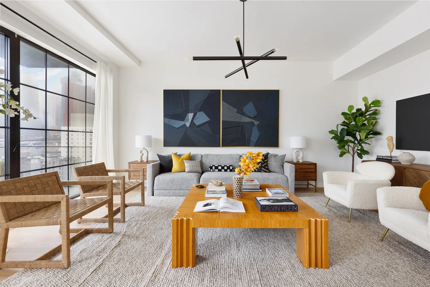 Keyed elevator access delivers you directly to this stunning 1,960-square-foot full-floor home featuring tall ceilings that soar nearly 10 feet over white oak flooring, wide art walls and low-E double-paned casement windows. A gracious foyer ushers you to the north-facing living room, where northern exposures and balcony flank generous seating and dining areas. Elevate your culinary experience in a stunning open kitchen featuring rich oak Lusso Cucina cabinetry adorned with Argento quartz countertops and backsplashes, glass accents, under-cabinet lighting and Brizo polished chrome fixtures. The fleet of Miele appliances includes a vented induction cooktop, convection oven and dishwasher.