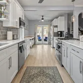 Hardwood floors grace the home, adding elegance and warmth throughout. Parking is included, ensuring convenience. The layout effortlessly caters to hosting, from the inviting kitchen to the multiple patios. Major updates include renovations throughout most of the home - all 3 bathrooms, the kitchen, newer appliances, hot water heater and HVAC system.