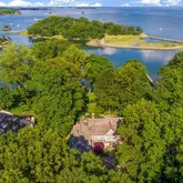- Directions: Rte 1 to Ring's End Road; then right on Pear Tree Point Road and left on Long Neck Point Road to #123 - driveway flanked by stone lighthouse pillars