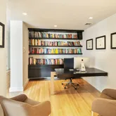 An expansive integrated Living Room/Dining Room/Kitchen, 2 extra large bedrooms, 2 full bathrooms and a spacious multi-functional study/office/media room comprising 2,053 sq.ft., with walls of large west-facing sound-cancelling mahogany windows and 10-foot ceilings, custom recessed lighting, motorized window shades, and invisible speakers. This light-filled trophy home has a Zen feel, complete with a stunning fireplace clad in rare travertine limestone from New Mexico and freshly refinished solid hardwood floors in natural finish. This is the perfect home to entertain or isolate.