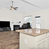 - Interior Features: CeilingFans, EntranceFoyer, EatinKitchen, GraniteCounters, GardenTubRomanTub, KitchenIsland, KitchenDiningCombo