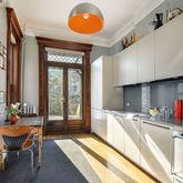 Step through the hand-etched glass doors through the foyer and into the elegant parlor floor. Soaring high ceilings, a grand pier mirror, and beautiful original wood details abound. Northern facing windows allow light to stream in all day into your living room. The living room and dining room are separated by wood fretwork, and there is a decorative marble fireplace in the formal dining room with gorgeous turquoise tiles. Oversized windows in the dining room and kitchen look over the deck and verdant garden below. The separate kitchen has been tastefully renovated with the finest appliances: Italian Boffi cabinets, Subzero and Miele appliances, and a Gaggeneau stove top and oven. Dine in your windowed kitchen or enjoy al-fresco dining on the deck. Escape from city life in the tranquil and lush garden on an extra deep lot of 131 square feet- a true gardener’s paradise!
