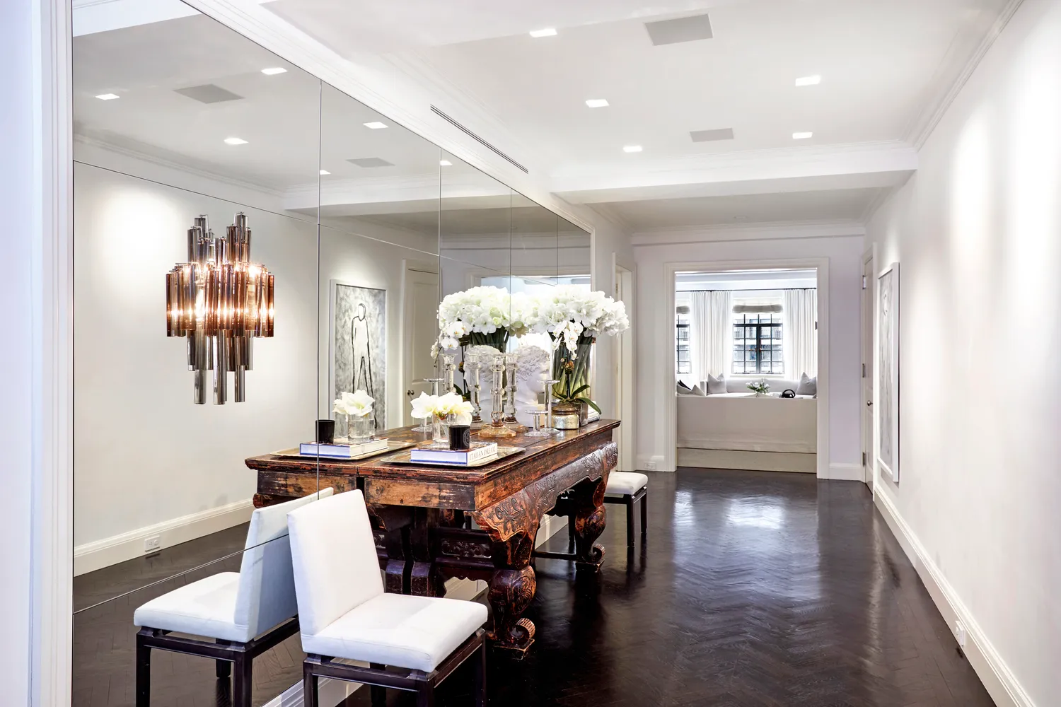 Enter this timeless Carnegie Hill residence from a semi-private landing into a dramatic 30’ gallery with ebony herringbone floors and immediately appreciate the unusual large-scale of the prewar residences at 1100 Park Avenue, designed by De Pace & Juster circa 1930.