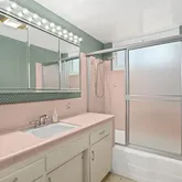 This inviting home features 3 bedrooms and 2.5 bathrooms. The primary bedroom includes a stylish 3/4 bathroom with two chic 1960's sinks. The second bedroom has been thoughtfully extended with a permit, providing ample space for various uses.