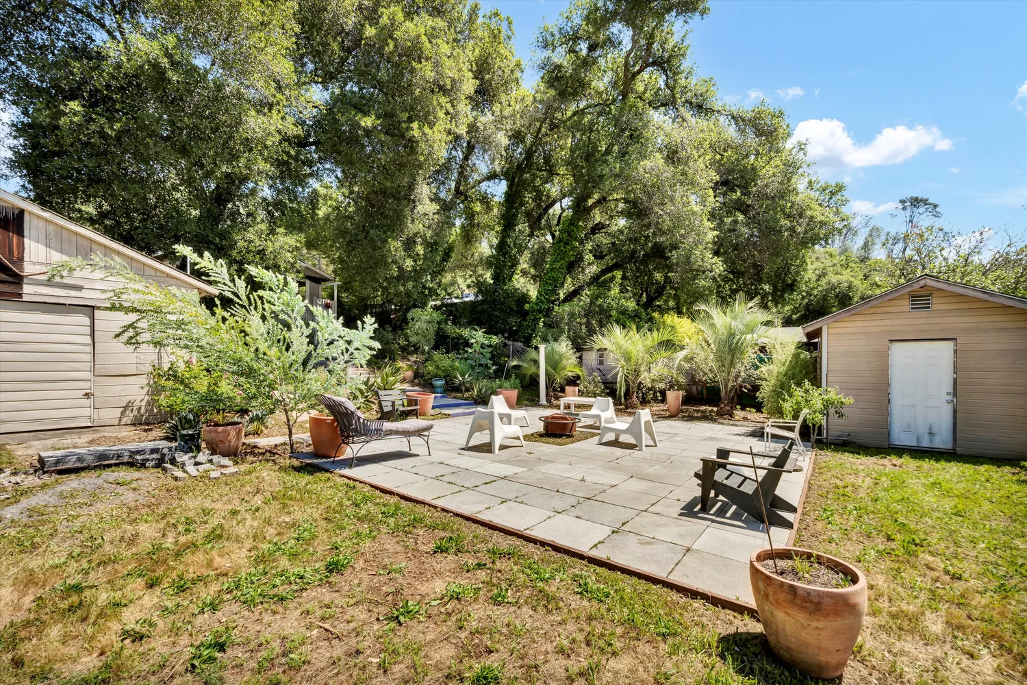 The existing 808 +/- sq ft, 2-bed/1-bath home is a major fixer—an ideal canvas for those ready to bring their vision to life. The lush, level land features a detached garage (also in need of repair), multiple storage sheds, and plenty of space for gardens, outdoor living, or possibly a pool!