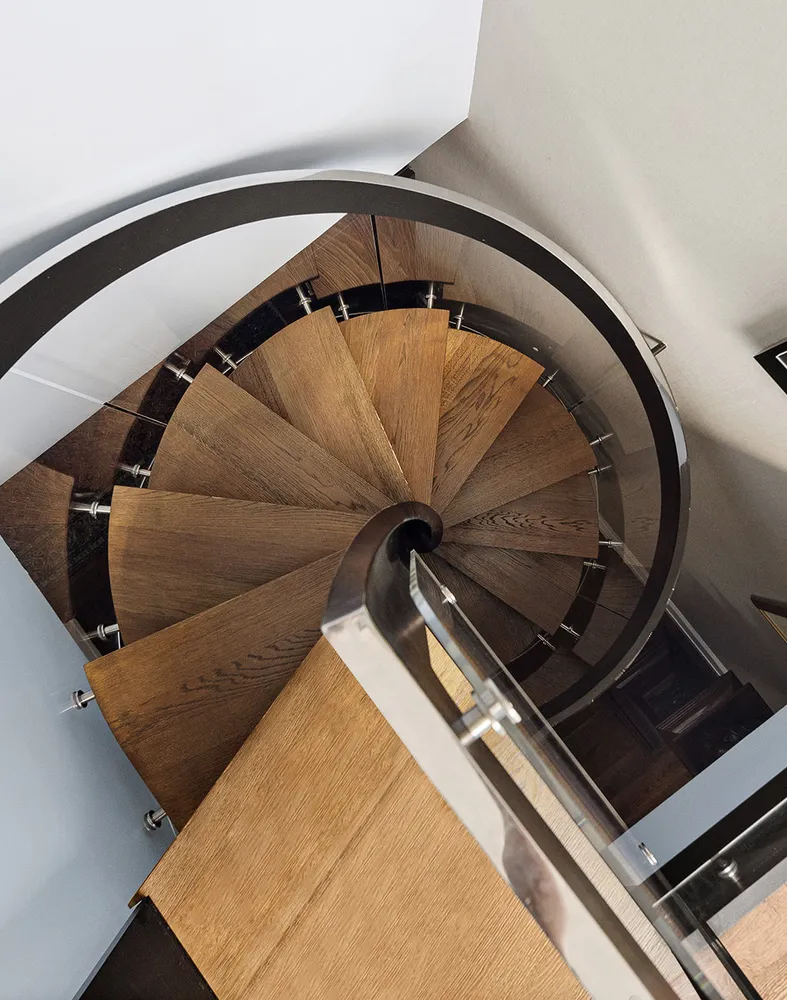 An open staircase leads you to the upper level and the current primary suite featuring sunny, open northern and southern views. A custom-built walk-in closet and a secret closet behind a bookshelf provide generous storage space for the largest of wardrobes and the windowed, en suite bath has been superbly renovated with a large walk-in rain shower and the finest fixtures and finishes.