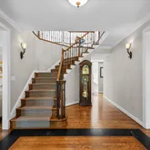 Step inside to discover authentic hardwood floors with exquisite marble inlays, a full-home surround sound system (inside and out), and an entertainer’s dream gourmet kitchen outfitted with top-tier appliances and rich custom cherry cabinetry. The formal dining and living areas offer warmth and grace, while the main-level study showcases custom wood built-ins, ideal for a refined home office.