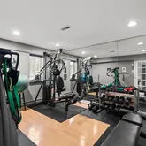 Downstairs, the lower level is a sanctuary of its own—complete with a climate-controlled wine cellar, a home gym, and a sun-soaked solarium that opens directly to the private outdoor oasis.