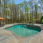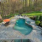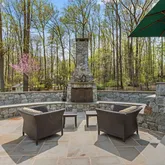 Relax in your own backyard paradise designed for indulgence and effortless entertaining. Enjoy the heated pool, a relaxing hot tub, an outdoor kitchen, and multiple entertaining areas including a stunning wood-burning fireplace and a cozy fire pit. Whether you're hosting a summer soirée or savoring a quiet evening under the stars, this backyard haven is ready for every occasion.