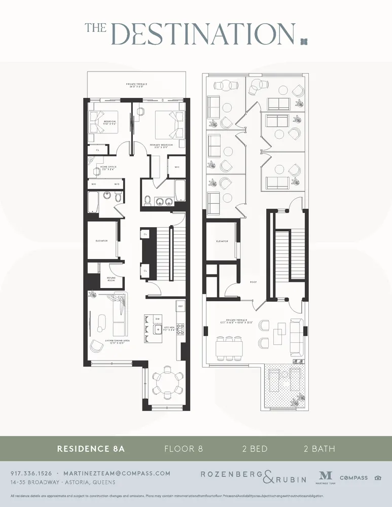 Discover unparalleled elegance at The Destination, Astoria’s newest luxury condo development at 14-35 Broadway. This two-bedroom, two-bathroom full-floor penthouse condo with two private outdoor spaces, including a terrace and private roofdeck, offers a harmonious blend of form and function. It was designed by Rishan Design and crafted by esteemed developers Yosi Rozenberg and Joe Rubin. This residence has a private keyed elevator entry and parking available.