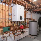 - Disclosures: Plans show oil tank,but home was converted to gas 33 years ago. Extensive Basement Technologies dehumid. system in place. Navien high-eff. condensing boiler & tankless hot H20. Earliest Fireplace cleaning/insp. date was 1/7,so not sure about functionality of FP. LOWER LEVEL NOT INC. IN SQ. FOOTAGE