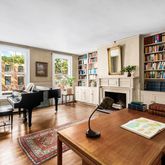 Halfway up the winding stair, you'll discover a perfect 70's era black and white, windowed bath. Continuing up you'll find an enormous primary bedroom, a huge library-- large enough for a desk, endless books, and a baby grand-- and finally, an office or sitting room looking west over the trees tops and brownstones on Henry Street.