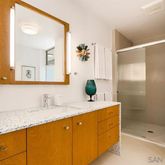 - Supplement: Reaching the market for the third time since it was designed by the master’s hand in 1947, the Keller Residence features floor-to-ceiling glass throughout - including Fleetwood sliding glass walls, quartz countertops and high-end contemporary kitchen appliances. From terrazzo and pearl porcelain tile in the amazing bathrooms, to wood and (original) concrete flooring in the public spaces, you will enjoy the indoor surfaces as much as the outdoor Ipe wood decking hosts your year-round entertaining and view-gazing.