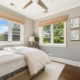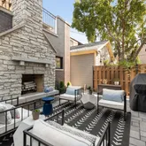 This attractive 5,350 sqft brick and limestone home is ideally located on a bright corner lot. Completed in 2015 by O'Donnell Builders, it includes exceptional finishes, as well as custom window treatments, motorized shades, beautiful hardwood floors, designer lighting, enhanced security, built-out closets, and high-end electronics. Ideal for entertaining all year round, this home has a generously proportioned interior plus a fenced front yard, a rear terrace with wood burning fireplace, and three...This attractive 5,350 sqft brick and limestone home is ideally located on a bright corner lot. Completed in 2015 by O'Donnell Builders, it includes exceptional finishes, as well as custom window treatments, motorized shades, beautiful hardwood floors, designer lighting, enhanced security, built-out closets, and high-end electronics. Ideal for entertaining all year round, this home has a generously proportioned interior plus a fenced front yard, a rear terrace with wood burning fireplace, and three large decks. The main level includes a dedicated entry foyer, combo living/dining room, a high-end kitchen with SubZero, Wolf, and Bosch appliances and both island and banquette seating, a pantry closet, and a butler's pantry with a wine refrigerator. It is open to the family room with beamed ceilings, and a fireplace flanked by glass front bookcases. There are four upstairs bedrooms including a luxurious primary bedroom suite with spa bath with dual vanity, freestanding tub and steam shower with two heads, and two large walk-in closets. Each of the other bedrooms has its own bath. The top floor media room with a wet bar opens out to a large partially covered roof deck with a fireplace. The other deck on this level faces due south and is an ideal spot to soak up the sun. The lower level has tall ceilings and includes a rec room with a wet bar, a private office, and a 5th en suite bedroom. Other features include a bedroom-level laundry room, zoned HVAC, radiant heat, snowmelt, a fire sprinkler system, an in-ground watering system, and more than enough storage. One of the benefits of being on a corner lot is that the garage door opens out onto Greenview, and does not face the alley. When you come in from the heated garage, you pass through the rear patio (which has snowmelt), and into a mudroom. This sophisticated home is within walking distance of all that Southport Corridor has to offer including great restaurants, boutiques and spas, Blaine Elementary School, Juniper Park, and Wrigley Field!