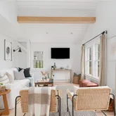 Welcome to your storybook escape where charm, craftsmanship, and comfort come together just minutes from the beach. A curved gravel driveway with cobblestones repurposed from the 1800s, sets the tone for wonderful curb appeal. Step inside to soaring shiplap cathedral ceilings and an airy, sun-filled open floor plan that instantly feels like home. The beautifully designed kitchen is the heart of it all, featuring a fireclay farmhouse sink, floor-to-ceiling subway tile, open maple shelving, high-end...Welcome to your storybook escape where charm, craftsmanship, and comfort come together just minutes from the beach. A curved gravel driveway with cobblestones repurposed from the 1800s, sets the tone for wonderful curb appeal. Step inside to soaring shiplap cathedral ceilings and an airy, sun-filled open floor plan that instantly feels like home. The beautifully designed kitchen is the heart of it all, featuring a fireclay farmhouse sink, floor-to-ceiling subway tile, open maple shelving, high-end cabinetry, sleek hardware, and all-new appliances offering both style and function for modern living. The first-floor primary bedroom with adjacent full bath provides convenience, while two additional bedrooms and a half bath upstairs offer flexible space for guests or family. Immaculate hardwood floors and oversized windows flow throughout, creating a warm and inviting ambiance. Outside, enjoy a custom bluestone patio and a hand-built wood-fired pizza oven perfect for al fresco dinners under the stars. A three-season glass sun porch and separate fire pit area extend your living space outdoors. Additional perks include a one-car garage, a storage shed, and a serene half-acre lot that feels like a private sanctuary. Featured in SO Rhode Island Magazine's 2019 holiday edition, this special home blends timeless style with easy coastal living. Just unpack, unwind, and enjoy your getaway awaits.