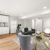 The lower level has been converted into a private suite, ideal for in-laws, an au pair, or a home office. This space includes a spacious bedroom, full bath, ample closet storage, a large living area with a kitchenette and a cozy working fireplace. Additionally, the basement features another full bath and a soundproof room perfect for a home gym or office. The suite has its own private entrance from the backyard.