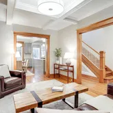 Large separate living room with exposed brick, custom wood shutters and a coffered ceiling with medallion opens onto the bright dining area....Wide porchfront perfectly perched on quiet street 3 blocks to Maury Elementary. This 3BR/3BA home melds beautiful historic details with modern amenities like central AC and generous separate yet open living areas. Relax on the front porch and chat with neighbors. Step inside to the large entry foyer, noting the beautiful unpainted chestnut trim and wood floors.
