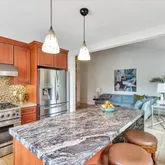 - Kitchen: Countertop - Granite, Dishwasher, Exhaust Fan, Garbage Disposal, Hood Over Range, Hookups - Gas, Hookups - Ice Maker, Island, Oven Range, Oven Range - Gas, Refrigerator