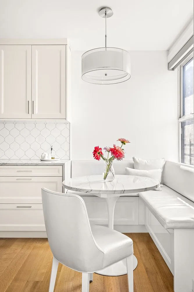 The chef's kitchen is a culinary haven, equipped with top-of-the-line appliances including Subzero fridge/freezer, Wolf gas range/oven, Wolf electric wall oven, Wolf microwave, and Miele dishwasher. The spacious cabinetry from Biefbi Cucine provides organization for all your kitchen needs. This chef’s dream has spectacular countertops, artistic tile backsplash, and custom designer features throughout. The kitchen also features a walk-in pantry with a wine fridge and additional freezer as well as a bistro-like built-in breakfast nook complete with corner banquettes by the window for casual dining in comfort and style. Just off the kitchen is your very spacious formal dining room with beautiful river views and enough seating for more than 12 people, a special place to host all your holiday celebrations.