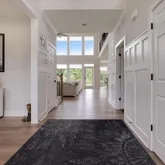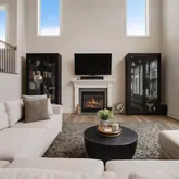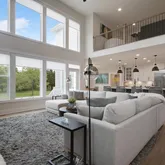 The Great Room, with its vaulted ceiling and gas fireplace, along with dramatic floor-to-ceiling windows in both the Great Room and Owner's Suite, create an inviting and luxurious ambiance. The 1st-floor Owner’s Suite is complete with “his and her” walk-in closets, tray ceiling, ensuite with dual vanities, frameless shower with floor-to-ceiling tiles, and water closet.