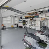 The extended Chef’s Kitchen features top-of-the-line stainless-steel appliances, including a Wolf 6-Burner Gas range with convection oven, GE Monogram Appliances, a built-in microwave with infrared burner, dishwasher, and a 48” Side-by-Side Cabinet Refrigerator, making it a dream for any culinary enthusiast. Additional kitchen highlights include recessed lighting, designer pendants, maple cabinets with glass insets, undermount lighting, oversized quartz countertops with tumbled stone backsplash, and a pot filler.