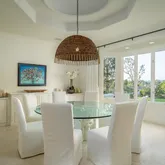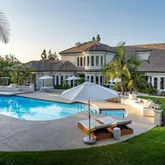 Poised on an elevated view site overlooking the Rancho Santa Fe valley, this beautifully renovated and exquisitely appointed custom estate elevates Southern California’s dream-worthy lifestyle to new heights. Impressive wrought iron and glass entry doors open to a foyer with travertine and stone finishes that hint at the elegant craftsmanship that awaits throughout the residence. The home lives like a single-level floorplan with the first floor hosting 4 of 6 ensuite bedrooms, formal living and dining...Poised on an elevated view site overlooking the Rancho Santa Fe valley, this beautifully renovated and exquisitely appointed custom estate elevates Southern California’s dream-worthy lifestyle to new heights. Impressive wrought iron and glass entry doors open to a foyer with travertine and stone finishes that hint at the elegant craftsmanship that awaits throughout the residence. The home lives like a single-level floorplan with the first floor hosting 4 of 6 ensuite bedrooms, formal living and dining rooms, a wood-paneled library/office, and an intimate master suite with lounge and tranquil bath. This floor also displays a family room and a stunning kitchen with casual dining area, oversized granite island, a walk-in pantry, and top-of-the-line appliances including a commercial-grade 6-burner Viking range, a SubZero refrigerator and a warming drawer. Approx. 7,658 s.f., the 6-bedroom, 8.5-bath home is bathed in natural light. Upstairs awaits an additional ensuite bedroom, a flexible studio/office/retreat/gym, and a separate cinema-caliber theater. The lushly landscaped 1.250-acre property has a spectacular resort-style backyard with a sunny southern orientation, a 54' pool with spa, 4,000 s.f. of decking, an elevated gazebo and a built-in BBQ.