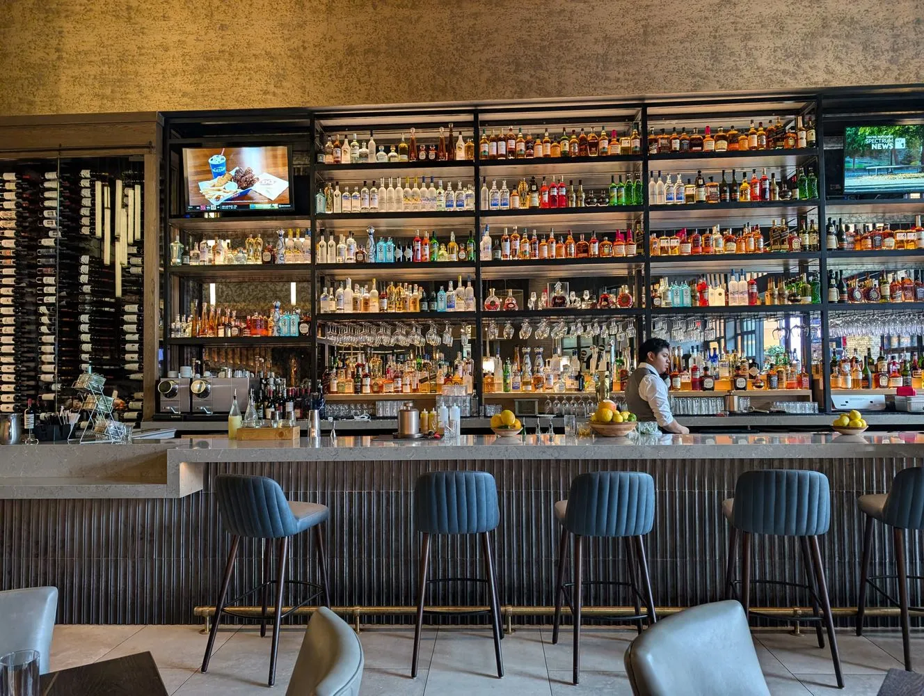 The chef-inspired corner kitchen is a standout, featuring top-of-the-line stainless steel appliances and an impressively spacious countertop—an uncommon luxury in modern condominiums—perfect for both everyday cooking and effortless entertaining.