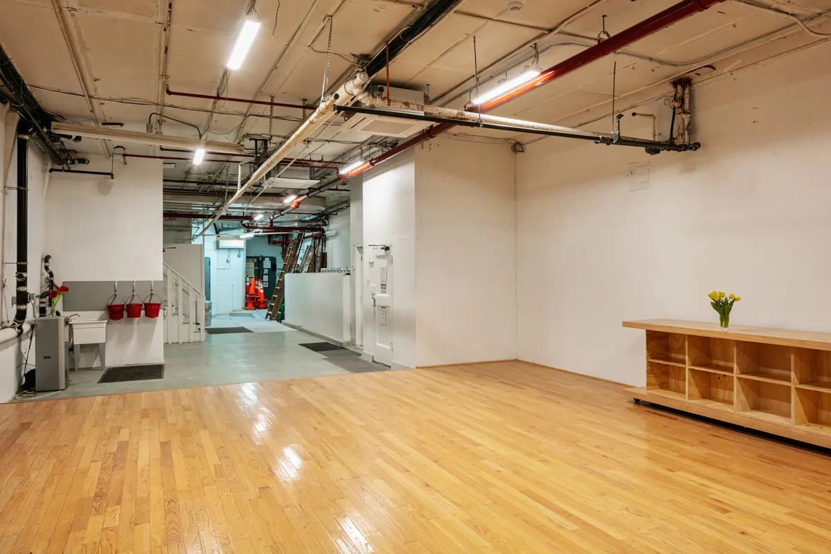 4 bathrooms, 3 showers, 3 dressing rooms, one large beauty bar, 68 lockers and 2 private freight elevators, Ground to Basement and Basement to Street Level