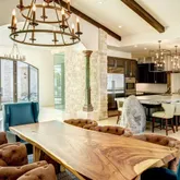 - Interior Features: All Bedrooms Down, Master Retreat, Walk In Closet, Granite Counters, Beamed Ceilings, Built-in Features, Bar, Recessed Lighting, Track Lighting