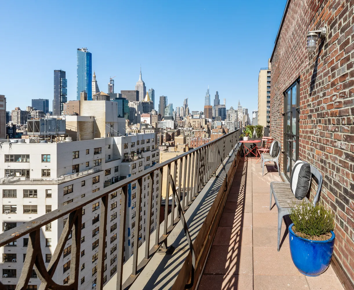 Perched atop a premier co-op building in Gramercy, this stunning penthouse studio offers a rare blend of indoor-outdoor living. With soaring 10-foot ceilings and an expansive south- and west-facing terrace, this sun-drenched retreat is a true sanctuary in the city.