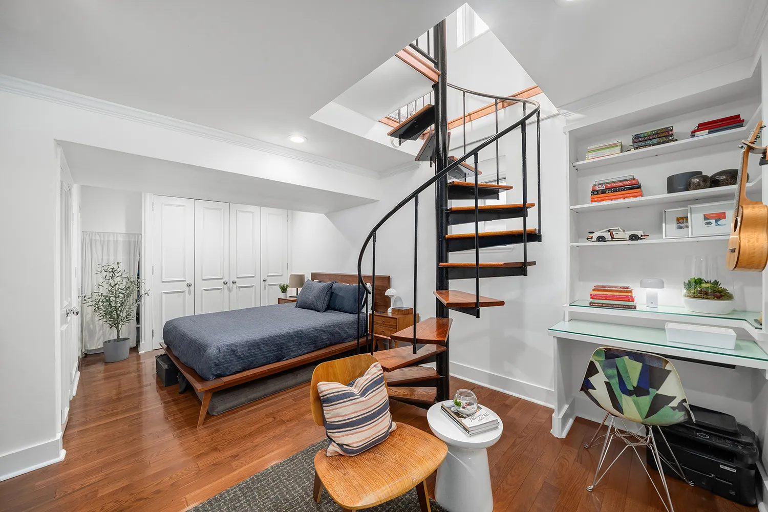 Down to the lower level (which includes a window), a king-sized master bedroom plus built-in office has full height ceilings. A renovated full bathroom sits alongside 5 separate closets plus additional overhead storage and best of all, a washer-dryer. This intimate co-op on a quiet, architecturally-superb Chelsea block features video security, low monthly maintenance, and pets are permitted with board approval. A beautiful and historical property in turnkey condition -- now available and priced to sell.