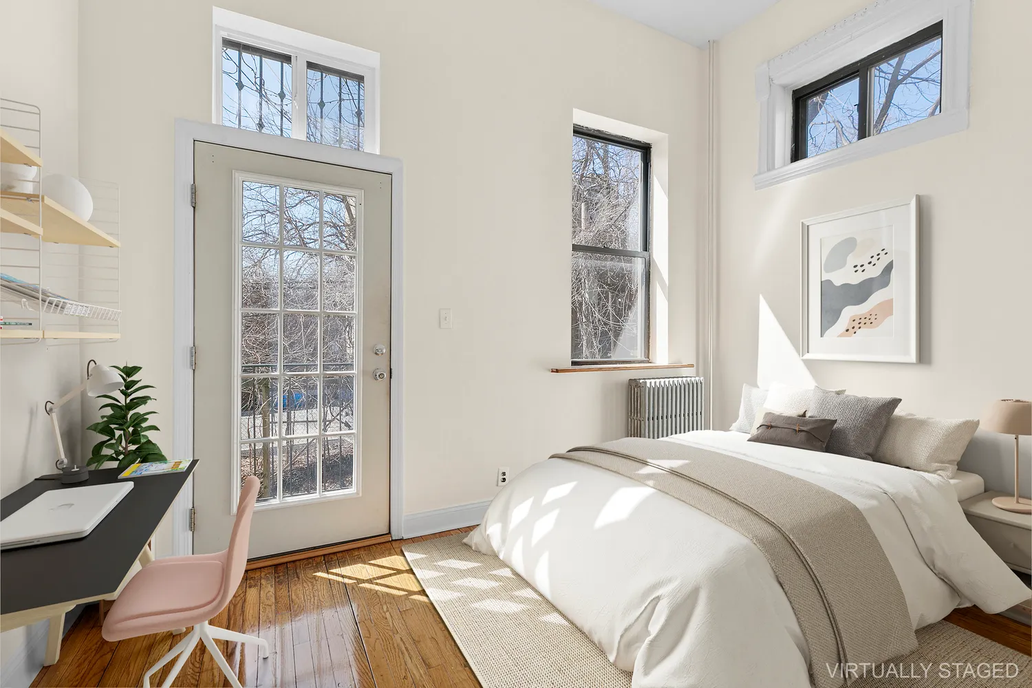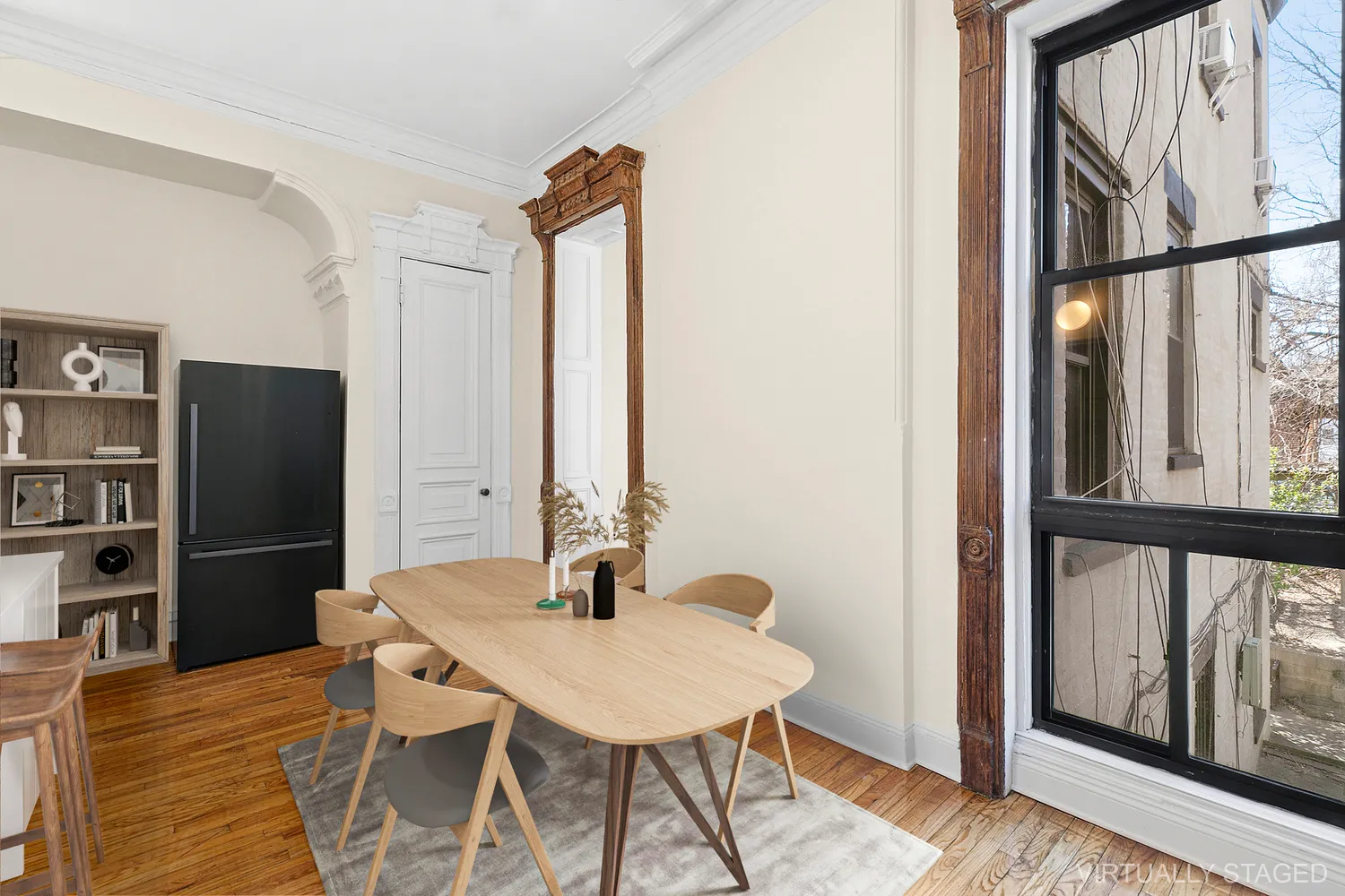 Hardwood Floors: Beautifully refinished, adding warmth and elegance throughout the apartment.