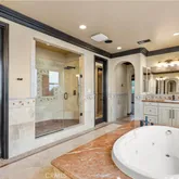 - Room Bathroom Features: Bathtub, Shower, Shower in Tub, Closet in bathroom, Double sinks in bath(s), Exhaust fan(s), Jetted Tub, Separate tub and shower, Soaking Tub, Vanity area, Walk-in shower