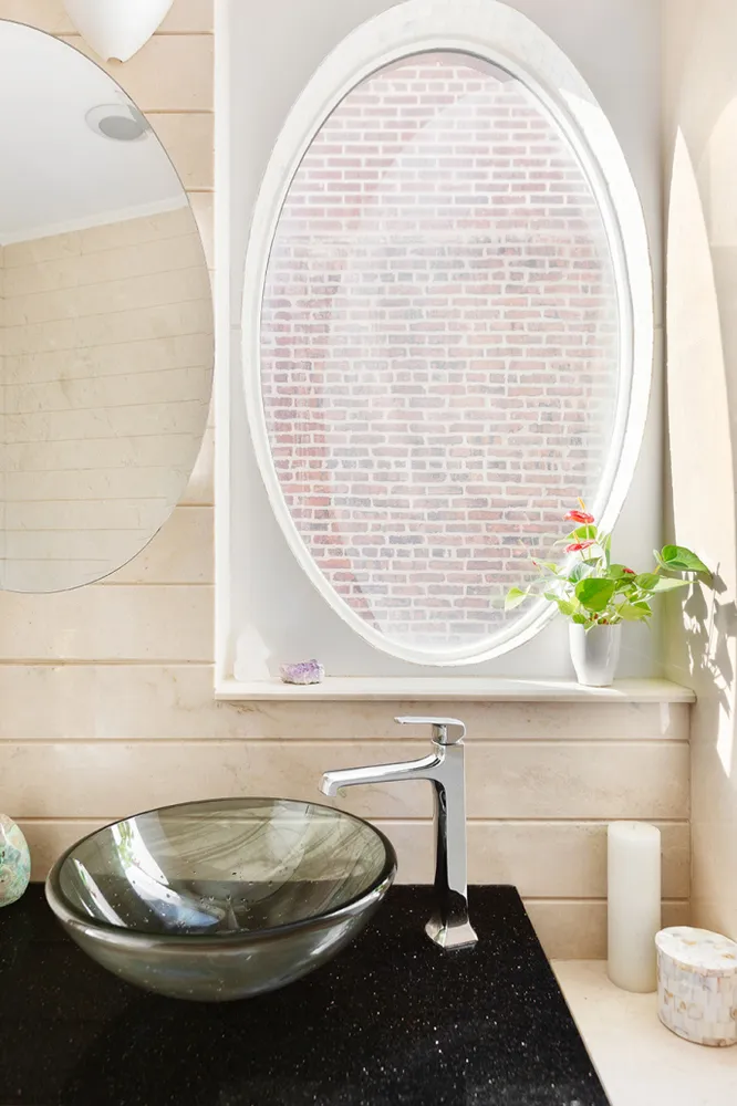 Framed by a picturesque window, the primary suite features a private balcony and a windowed-ensuite marble bathroom with a deep soaking tub. The suite accommodates a king-sized bed and also has a large walk-in closet.