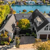 Set on the Belvedere Lagoon, one of Marin's most sought-after locations, known for its tranquil waterfront setting and views, this sophisticated residence was built with quality craftsmanship and thoughtful intention throughout. The mostly single-level floorplan boasts grand scale rooms where French doors open to mature landscaped grounds and a private dock affords easy access to the crystal blue waters of the lagoon. The architecturally stunning living room features a soaring wood-beamed ceiling,...Set on the Belvedere Lagoon, one of Marin's most sought-after locations, known for its tranquil waterfront setting and views, this sophisticated residence was built with quality craftsmanship and thoughtful intention throughout. The mostly single-level floorplan boasts grand scale rooms where French doors open to mature landscaped grounds and a private dock affords easy access to the crystal blue waters of the lagoon. The architecturally stunning living room features a soaring wood-beamed ceiling, a grand fireplace, and an intimate library. The chef's kitchen includes a large center island and abundant pantry space. The elegant dining room flows to the gardens providing a perfect setting for gatherings large and small. The well-proportioned primary suite offers a walk-in closet, a luxurious spa-like bath, and French doors that open to a private terrace and spa. Another bedroom suite with views and office area is found upstairs. A separate wing hosts two additional bedrooms and bath. Beautiful hardwood floors, radiant heat, A/C, an outdoor kitchen, a Tesla power wall and solar add to the appeal. This exquisite home, with an easy stroll to charming restaurants, elegant yacht clubs, and picturesque parks, offers an unmatched lifestyle. This is luxury waterfront living at its finest!