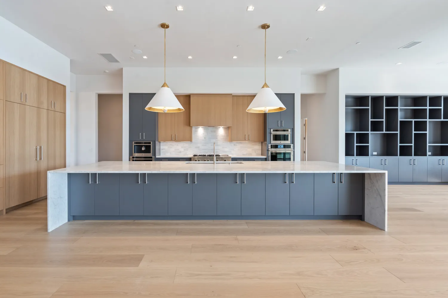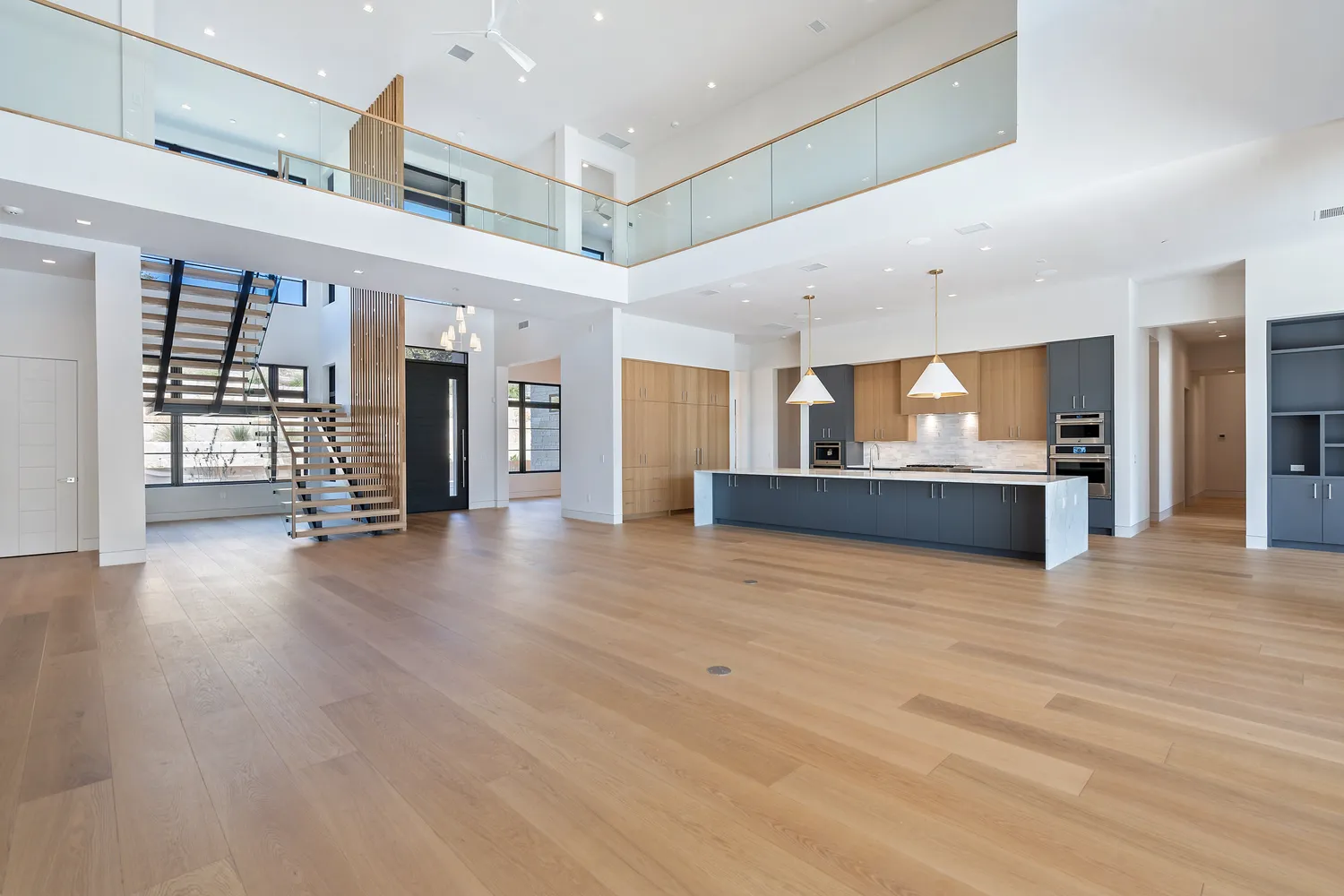 As you enter, be enthralled by the exquisite attention to detail and opulent design. The home features a stunning wine cellar in the formal dining room. Complemented by floor-to-ceiling windows that frame the mesmerizing pool and valley views, the open floor plan integrates the living and kitchen areas, boasting high-end appliances, a massive island, a substantial butler’s pantry/second kitchen, and a walk-in pantry.