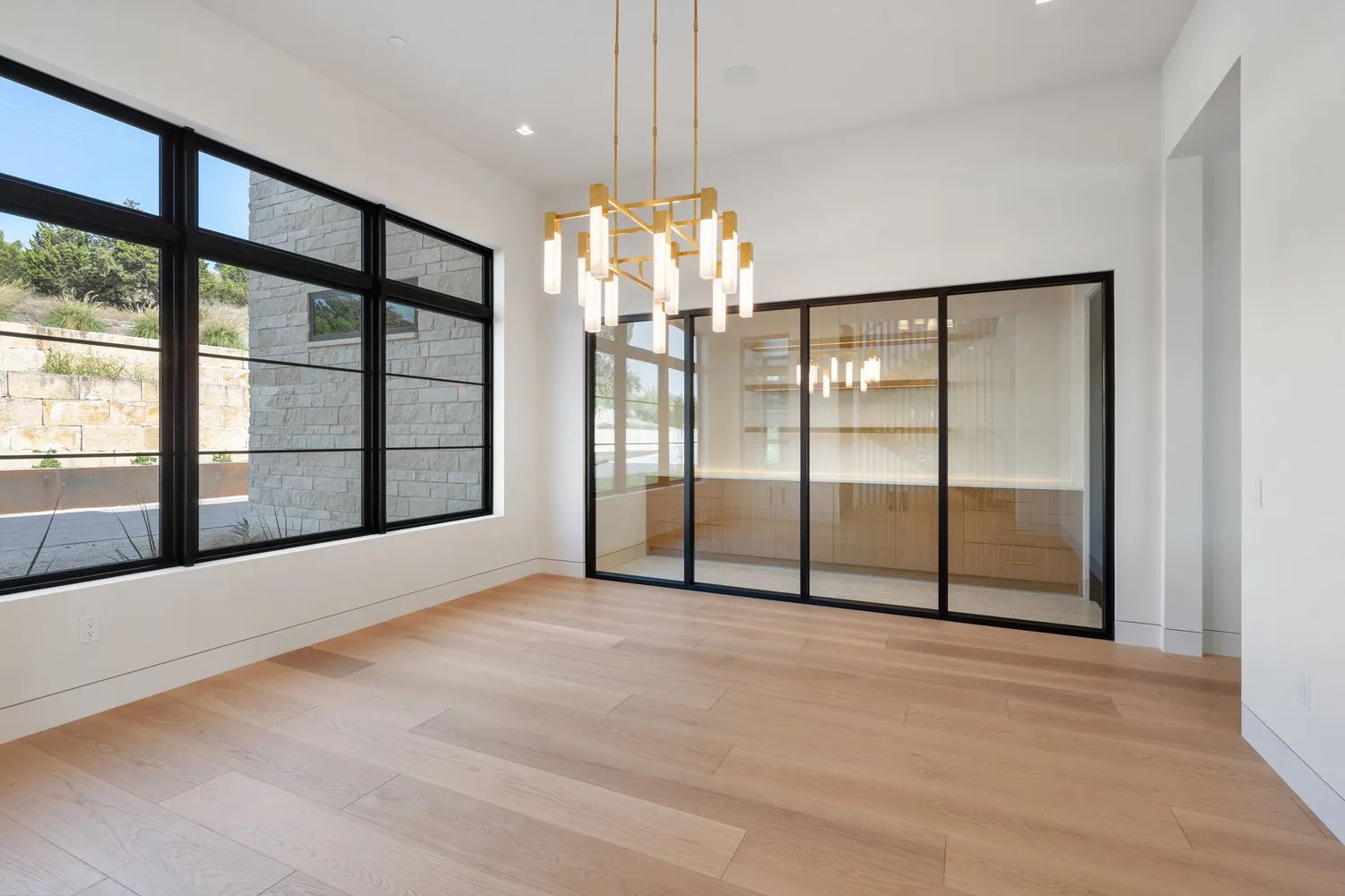 Temperature and humidity-controlled wine room off dining area