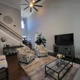 - Interior Features: High Ceilings, Fireplace, Walk-In Closet(s), Solid Surface Counters, Entrance Foyer, Open Floorplan, Split Bedroom Plan, Pantry
